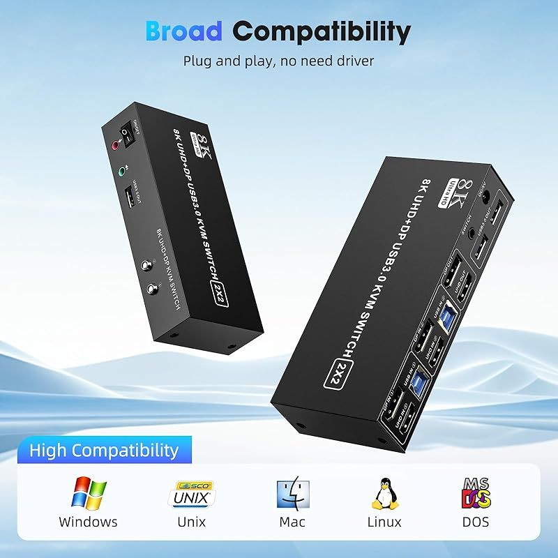 HDMI Displayport KVM スイッチ 2 モニター 2 コンピュータ8K 60Hz 4K 60Hz 2台のコンピュータのためのデュアルモニタースイッチ 3つのUSB 3.0ポート デスクトップコントローラーの拡張 ミラーモードをサポーの検索結果