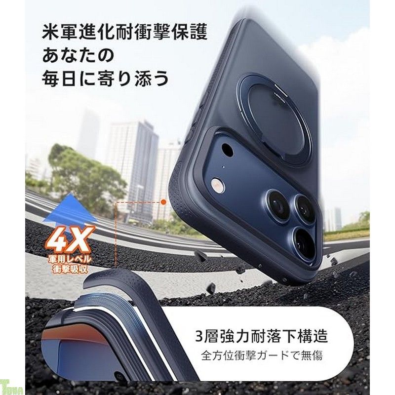 TORRAS iPhone 17 Pro Max 用 ケース 一体 360°新定点回転スタンド Magsafe対応 Ostand Q3 Spin 高耐久性 耐衝撃 ゼンマイ式スタンド リング 縦横両対応 マグネット搭載 急速充電対応 指紋防