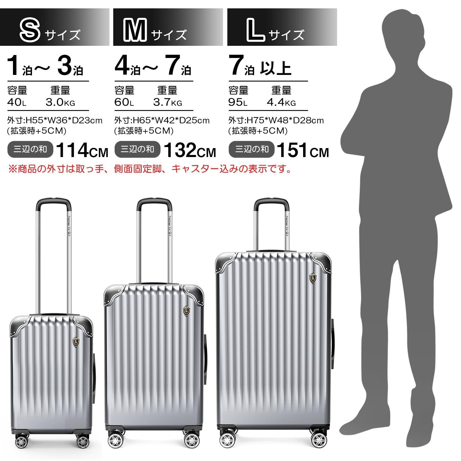 New Trip スーツケース キャリーケース キャリーバッグ 拡張機能付 耐衝撃 超軽量 大型 静音 ダブルキャスター TSAローク搭載 ファスナータイプ 旅行 ビジネス 出張 Sサイズ 機内持込 1-3泊 シルバー WWW_OPDRERGINERDOGAN_COM
