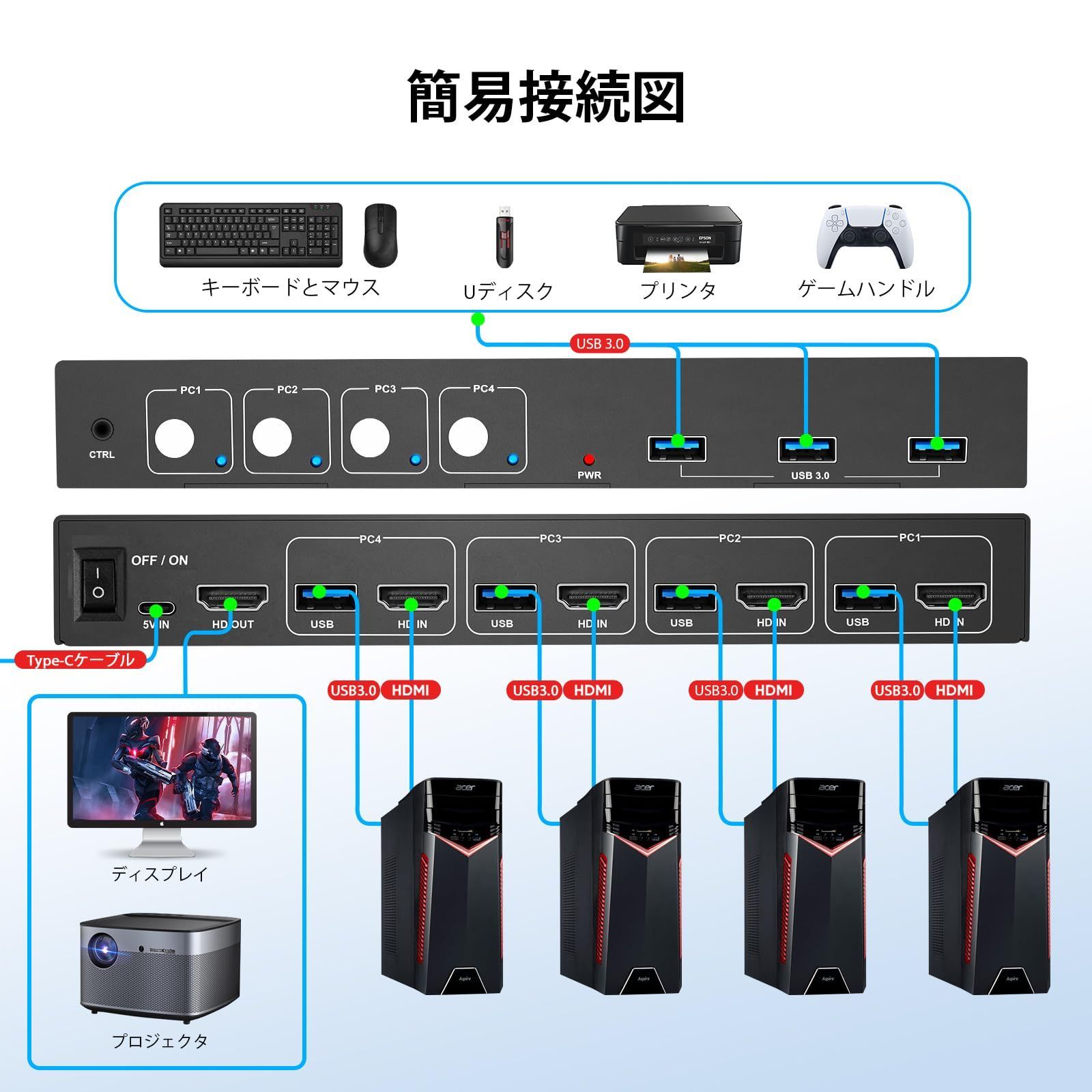 在庫 切替器 4K 60Hz対応 ドライバ不要 プラグアンドプレイ 4入力 HDMI フルUSB3.0ポート 4台のPCコンピュータが1台のモニタを共有 KVM KVMスイッチ 4K WWW_OPDRERGINERDOGAN_COM