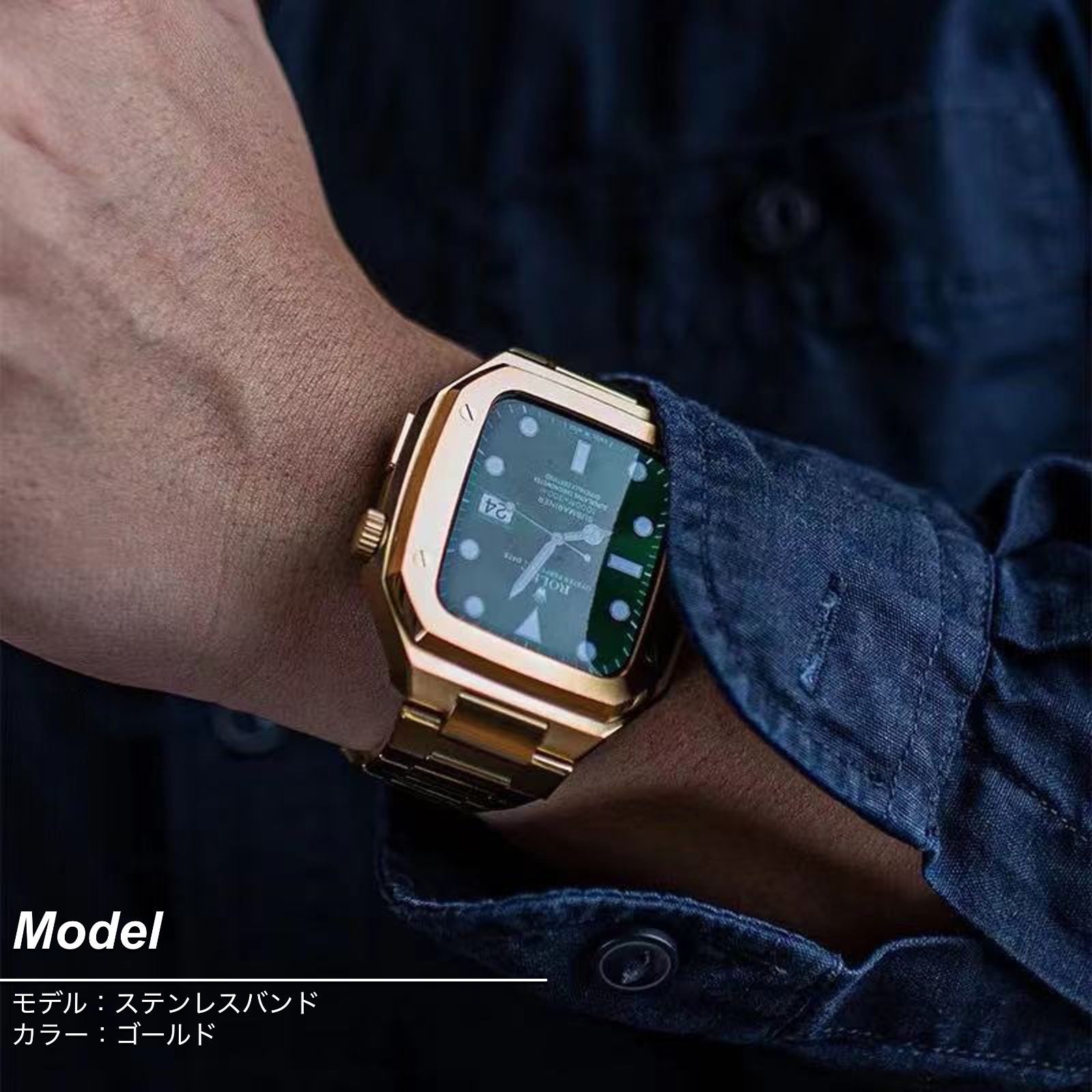 Apple Watch Series 9 8 7 6 5 4 SE 第2世代 第1世代 45mm 44mm バンド アップルウォッチ カバー ベルト ケース 一体型 ステンレス セット メンズ おしゃれ フル ゴールド ❷ WWW_OPDRERGINERDOGAN_COM