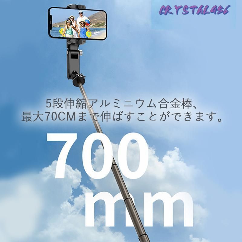 スマホ スタビライザー リモコン付き ポータブル 雲台 三脚 自撮り棒 付き 角度 位置 固定 縦向き 横向き 歩きながら撮影 LEDライト付
