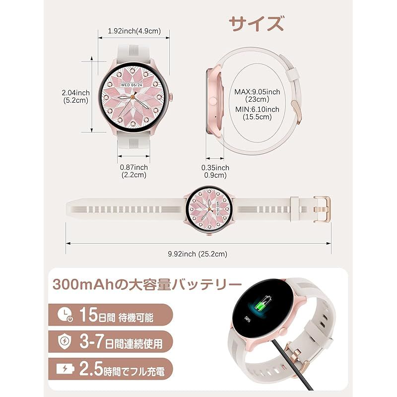 HUAKUA スマートウォッチ レディース iPhone アンドロイド対応 通話機能付き 通話音声調整可 一発消音 Smart Watch 1.38インチ大画面 丸型 腕時計 歩数計 着信通知 睡眠管理 天気予報 消費カロリー IP68防水 長持ちバッテリ 0 WWW_OPDRERGINERDOGAN_COM