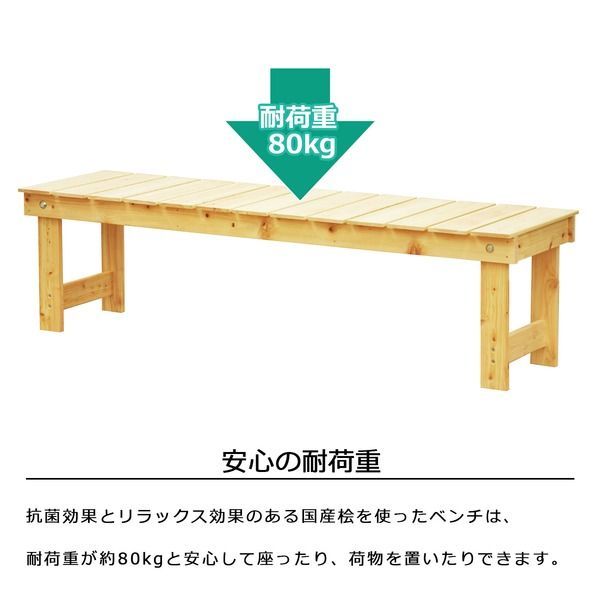 ひのき縁台 ベンチ椅子 約幅148cm 木製 ナチュラル 〔玄関 軒の検索結果